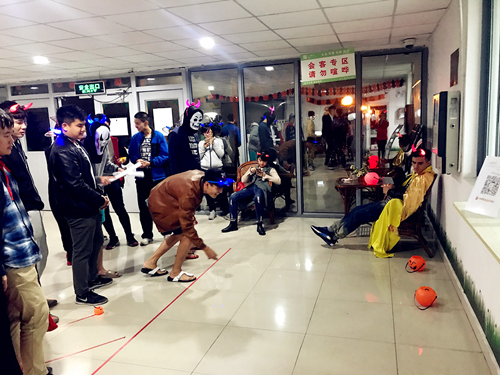 10月31日晚间六时许,各国留学生纷纷聚集到了东区15号楼学生宿舍一楼大厅,工作人员为同学们分发了早已准备好的万圣节服装及道具,许多留学生还自发精心装扮了自己,大家互相拍照留念,活动现场非常热闹。