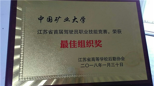 3月31日,江苏省高等学校后勤协会运输保障联盟2017年年会暨各级、各类先进集体、先进个人表彰大会在东南大学召开。我校运输服务中心荣获江苏省高校后勤运输保障2017年度先进集体、江苏省高校首届驾驶员职业技能竞赛团体三等奖和最佳组织奖,运输服务中心驾驶员徐国良、张坚分别荣获先进个人及技能大赛个人奖。
