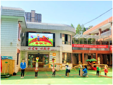 为了让孩子们对清明春耕有着更加直观的体验,全园的老师们还精心准备了春耕舞蹈《悯农》,在老师们优美的舞姿中体会农耕的辛劳,背景的大屏幕上,滚动播放着各班师生合作制作的稻草人。