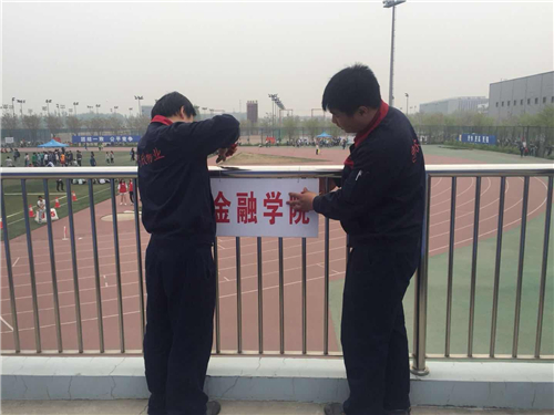 工程技术部人员负责拆卸主席台前栏杆,为运动会主席台提供一个广阔的视角;按照学校开幕式看台座区示意图将学院牌悬挂到位;同时还负责做好场地足球门的搬移、旗杆的提前检修、会场电力的供应等项工作。
