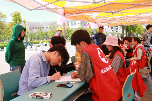 4月20日,校红十字会联合校工会、校团委、校医院和舟山市中心血站在新城校区成功广场举办大型献血活动。本次献血活动主题是“血同脉 爱同行”。