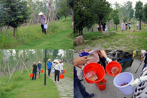 在集合点,第三支部书记、物业部副部长徐伟伟给大家科普了生活垃圾分类的相关知识,并指导大家将捡到的垃圾进行简单分类。党总支书记蔡飞龙表示,国家目前正在大力推进生活垃圾分类管理工作,作为负责政策执行部门的党员,要带头树立垃圾分类理念,从身边做起、从点滴做起,以实际行动来助推这项工作在师生中的顺利开展。