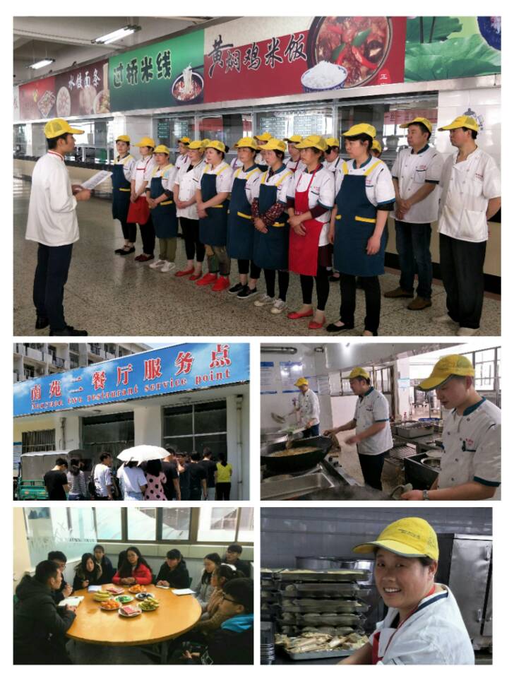 南苑二楼餐厅全体员工始终保持高度的责任心。因为餐饮服务工作是做人的工作,不是简单的做物的工作。近年来餐厅全体人员始终坚持“以人为本,追求完美”的服务理念,不因待遇相对滞后而影响工作,不因工作难度大而退却,在奋进中求发展,为学校的发展分忧解难、添砖加瓦。工作方面有创新:(一)建立餐厅管理网络结构图。餐厅建立人员组织结构图、设备设施安全网络图、员工消防知识一览表、剩饭剩菜处理流程、建立餐厅内部工作微信群,对照中心《员工手册》制定了“现场管理奖惩办法”等新举措,通过这些举措提升了管理效率,进一步增强了餐厅管理工作执行力。(二)加强教育培训,提高职工素质。1、对员工进行了“员工职业道德修养”培训。2、围绕“安全”工作,对员工开展了安全培训,并上墙张贴“细节决定安全,安全决定一切,责任胜于能力”宣传语、设备设施安全网络图、员工消防知识一览表,放在醒目位置要求员工增强安全意识,筑牢餐厅安全防线。3、为了普及食品安全知识,增强从业人员卫生安全责任意识,开展了食品安全知识培训。4、为强化集团规章制度落地实施,加大政策的贯彻和执行力度,帮助职能部门及有关业务岗位负责人熟悉管理要求及程序,保障员工劳动权利。按照中心要求,利用晨会组织全体员工系统的学习集团的相关制度。5、为全面优化服务品质,提升服务品味,增强“服务师生、保障大局”意识,以开展优质服务月活动为契机,进一步激发全体员工的积极性、主动性和创造性,提高餐厅员工的服务意识和专业修养,利用晨会举行了“用心服务创造价值”的专题培训。(三)坚持优质服务,不断拓展服务理念。1、与学生代表召开了“食堂那些事,深聊食堂”学生座谈会,旨在更进一步畅通学生对餐饮服务工作的监督渠道,提高饮食供应各环节透明度,提高餐饮服务的知名度,提升就餐者的幸福指数,尊重学生的知情权,利用学生代表,发挥好桥梁纽带作用;2、“聚焦服务品质,提升服务品位”,为顺利开展好第六届“优质服务月”活动,推动集团服务的提档升级,为营造师生的美好生活环境提供优质服务,实现外塑形象、内强素质,餐厅与校自管会联合举办“我与食堂,携手并进”活动,活动的目的及意义,促进学生与餐厅之间的沟通,相互了解,加深彼此的感情,同时丰富同学们的知识面,增强同学们对我国美食文化的了解,加强同学们对中华文化的认同感。3、餐厅开展“文明服务窗口”“优秀团队”评比,每月评比一次,目的就是促进提升服务水平。4、餐厅在人性化服务方面:制作雨伞存放架,方便学生存放。