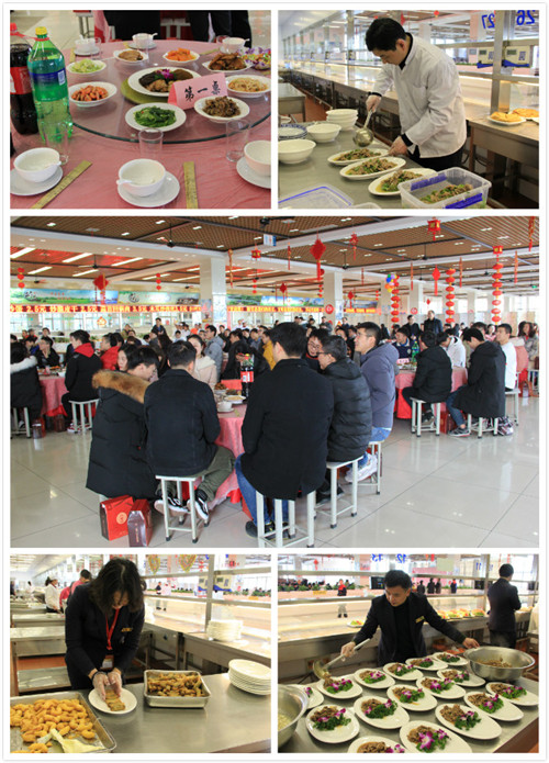 此次除夕午宴,从厨师团队与值班员工的选配,到午宴菜单的制订、所需食材的采购以及会场的布置,无不彰显出饮食中心的细心备至及关爱师生的用心;同时还特意为少数民族学生准备了丰盛的清真午宴。冷盘热菜,形色俱佳,应景菜名,别具特色,“丝丝情意浓”,“斗艳双一流”,“春意满江南”盛满了饮食中心员工对江大学子浓浓的真情。