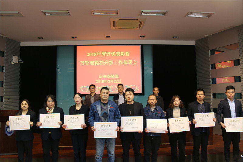 3月22日下午,后勤保障部在慎行楼从之厅召开2018年度评优表彰暨7S管理提档升级工作部署会。后勤保障部领导班子成员、各中心经理、全体党员、在编员工、主管以上员工、各经营实体负责人等参加会议。会议由副总经理何龙山主持。