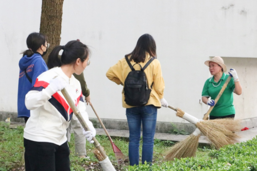 再来看看室外的园区保洁活动,志愿者们小组分工明确,男女搭配得当。他们在宿管工作人员的带领下带着扫帚等清洁工具在园区内进行着井然有序地打扫,不放过一个不起眼及长时间无人理会的垃圾。但是,在草丛中清扫枯叶似乎不是一件易事,尤其是在头顶着骄阳的情况下,尽管如此,志愿者们还是洋溢着热情的态度,一丝不苟地坚持到了结束的时间。最终,在大家齐心协力的合作下,园区被打扫得干干净净。