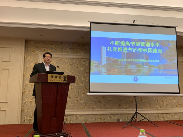中国教育后勤协会能源专业委员会全体委员大会暨2018年年会于2019年4月13日在桂林召开,我校喜获2018年全国节能工作“最佳节能风尚奖”。总务部部长陈仲元代表学校上台领奖,总务部副部长兼后勤管理中心主任任志宏副部长代表学校作了题为“不断提高节能管理水平 扎实推进节约型校园建设”演讲,这是我校继2018年节能监管平台顺利通过教育部、住建部验收并荣获“节约型公共机构示范单位”称号的又一殊荣。