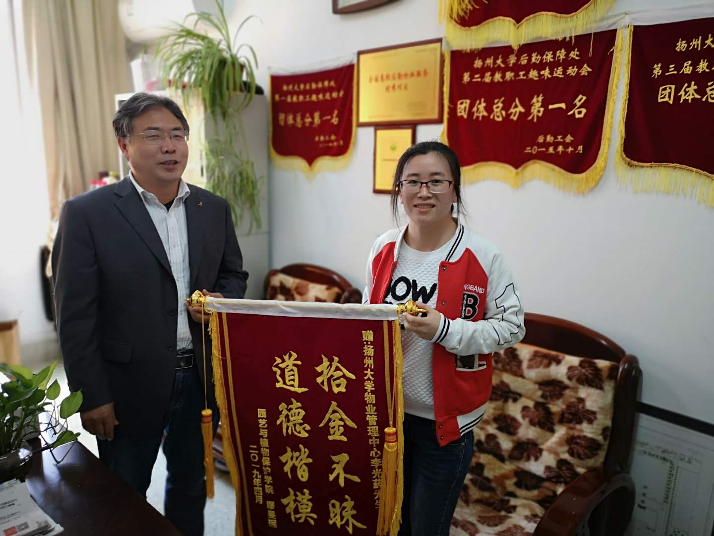 4月18日,园艺与植物保护学院繆老师的学生突然送来一面写有“拾金不昧 道德楷模”的锦旗,为物业员工的诚信、善良点赞。经了解,原来是文汇路物业员工李光跃于10天前在学院大厅捡到一个手提包,发现内有证件、银行卡和800多元现金,他根据证件线索物归原主,婉拒了老师提出的现金答谢。为表达感谢之意,繆老师多方打听物业员工的姓名,送来了锦旗。像李光跃这样拾金不昧的故事每天都在发生,物业员工也将继续传承和发扬着这一传统美德,传递社会正能量。