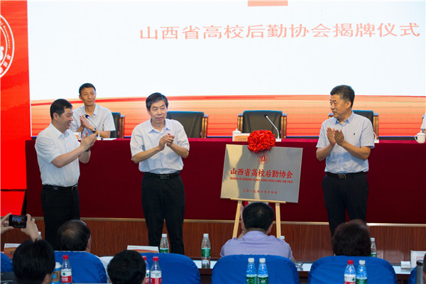 刘建平、马骏、吴斗庆共同为山西省高校后勤协会揭牌。