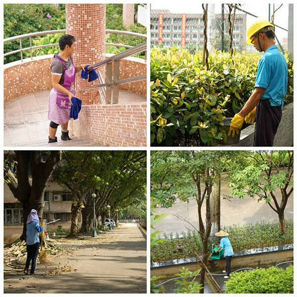 迎新前夕,环卫绿化工作人员依然保证校园各大区域的卫生清洁以及绿化工作正常进行。