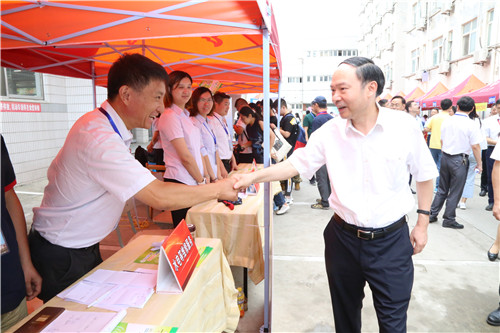 扬州大学党委书记姚冠新、校长焦新安、副校长洪涛巡视迎新现场