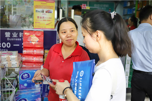 校园超市工作人员在现场整理各类货品,备好足够的生活用品供新生挑选。