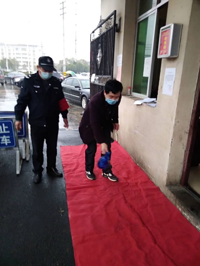为了确保疫情防控期间全院水电供应,杨旭华每天都会走遍校园,巡查水电管网供应情况,发现问题,及时现场处理。根据樟树市疫情处置要求,杨旭华身先士卒带人实行封校措施,封闭了南校门,用铁皮和钢管做成围墙,封闭了从南湖公园进入校园内的三个通道并写出公告牌。每天组织人员对校园环境、行政办公大楼、教师办公大楼的办公室、会议室、走廊、卫生间、农院广场等运动休闲场所进行清扫和消毒处理。购买了红地毯,铺在校门口,喷洒84消毒液,要求进出校门口人员必须踩踏,对鞋底进行消毒。系列举措有效保障了师生和校园的安全,得到师生高度认可。