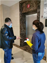 二、与员工一起科学配比消毒剂;交待员工对校内公共区域、家属区、停车场、电梯走道等重点区域进行消毒工作;亲自监控对校内进行的定期喷洒消毒。