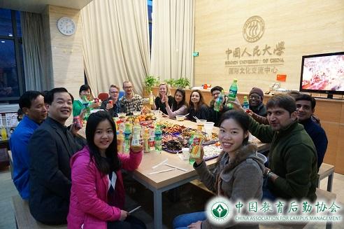 2月18日,国际公寓部特别安排了除夕年夜饭活动,组织30余名寒假未归国的留学生与在岗员工一起煮饺子、吃年夜饭、看春晚,欢聚一堂共度跨年之夜。此次活动为假期暂不回国的住宿留学生送去新春祝福,排解思乡之情,化解游学在外的孤单,同时让他们体会中国传统的过年氛围和文化习俗,赢得了参与留学生的真心感动与满意评价。