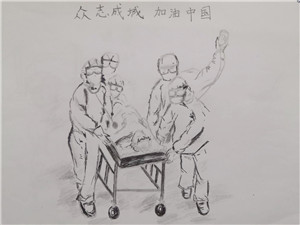 南京理工大学学生公寓的员工们,用画笔告诉大家:“我们战斗在一起,你们从未孤独!”在他们的画中,有对抗击新型冠状病毒战役中感动瞬间的定格,有对冲锋在救护一线的医护团队的感激,有对火神山、雷声山中国建设速度的自豪,还有对“武汉有难,全国支援”中国力量的自信……身在后方的我们,谨以此向我们的英雄致敬!