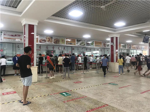 认真做好就餐安排。提前发布就餐须知、分批错峰就餐安排等餐饮服务指南,并广而告之。食堂增加防疫知识宣传、就餐标识和引导图示,并安排志愿者维护秩序。学生返校后,适当延长供餐时间,启动实行“多单元一窗制”供餐模式,即将食堂的供餐窗口分为若干个独立的供餐单元,适当精简供应品种,每个窗口所供品种大致,师生随机在一个窗口依序排队便可完成取餐、选餐,最大限度减少人员聚集。
