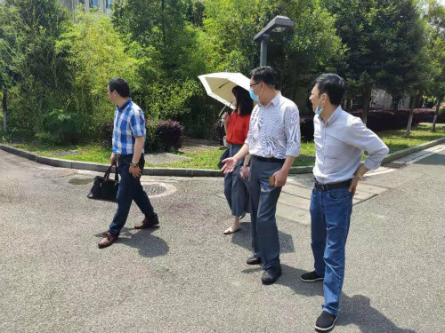 5月28日上午,市分类办宣传组主任陈力一行来校检查指导垃圾分类工作,基建与后勤管理处副处长贺志军、物业服务中心刘海波陪同检查。