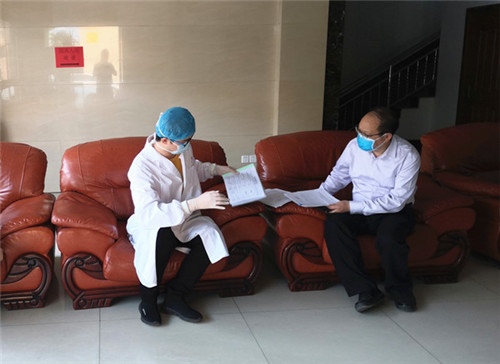 杨医生在工作中注意细节,合理安排体温检测时间,指导学生正确使用水银体温计,每日上午、下午各进行一次体温检测。有时候,学生因为备考和身体发热等原因,经常会出现体温测量不及时的情况,杨医生便会及时了解学生们的状况,督促他们及时上报体温,以确保体温监测准确有效、身体可以早日康复;杨医生还每日做好学生的用药指导和健康生活饮食指导,告诉同学们要多喝水加快身体代谢,可以喝牛奶、吃鸡蛋以增加蛋白质的补充,可以适当运动,提高身体免疫力,加快病情恢复。