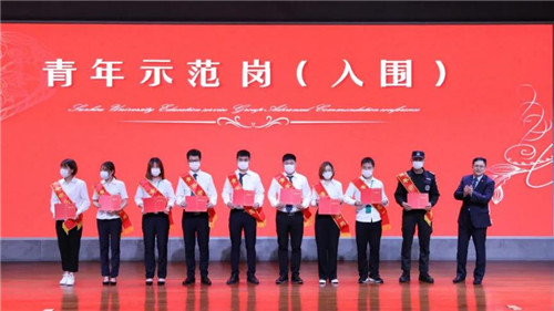 集团党总支副书记胡光娇、冯玉忠为“集团青年示范岗”颁奖