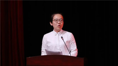 科桥餐饮公司实验中学项目史加琪作为“操作能手”获奖代表发言。她通过分享自身在财务核算、客户沟通、仓库管理、人员管理等方面的工作经验,阐述了及时、主动学习掌握信息化管理系统和主动为业主提供增值服务的重要性。
