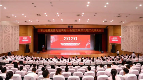 6月27日上午,苏大教服集团先进表彰大会暨五届三次职工代表大会隆重召开。大会对2019年度表现突出的先进集体、个人进行了表彰,宣布成立了集团青年QC小组;职代会表决通过了“《苏大教服集团薪酬福利规定》修订内容”。集团领导、各公司员工代表以及获奖人员共200余人参加了现场会议(受疫情影响,其他员工参与线上会议)。大会由集团首席文化官毛波杰主持。