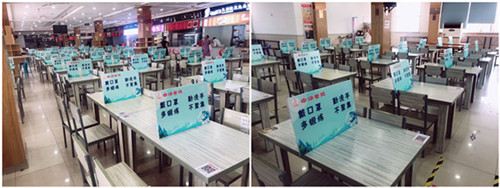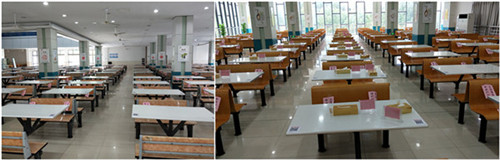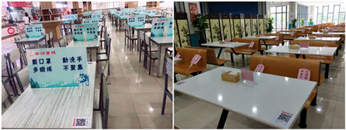 根据要求,后勤服务集团第一时间安排部署“扫码入座”相关工作,饮食管理服务中心全体人员迅速行动、有序配合,加班加点制作二维码桌贴,并及时将二维码粘贴到全校各自营食堂及外包租赁单位的可用座位上,确保“扫码入座”全覆盖。就餐期间,师生只需通过微信“扫一扫”功能即可实现“扫码入座”,同时完成就餐人员的信息采集及定点定位。