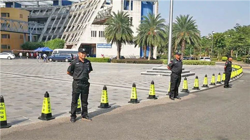 华侨大学开学迎新当天,安保部加强了校内巡查力度,在各个路口设置保安站岗,在做好秩序维护工作的同时对学生及家长进行线路引导,摆放路锥对汽车停放进行管理。