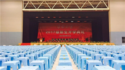 紧张而有序的迎新活动结束以后,项目部又马不停蹄地投入到9月17日迎新典礼的保障中。分部出动各条线管理人员连夜搬运座椅4500余张,保安员在多个学生入场道路站岗维持秩序,当天同时保障了开学典礼的顺利举行和三对三篮球赛的圆满闭幕。