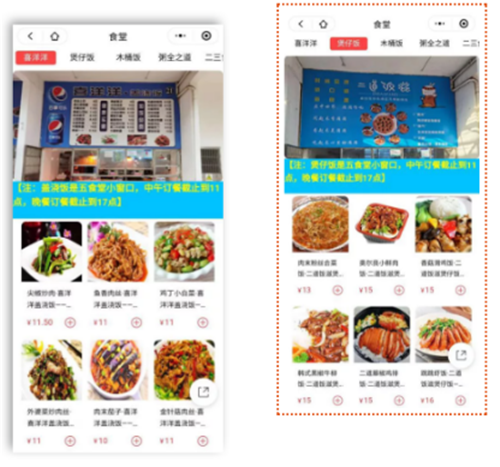 本学期,送餐服务仍在不断更新中,选择范围从上学期的二、三食堂扩展到四食堂、五食堂,增加了煲仔饭和木桶饭等选择,单餐可接300单以上。
