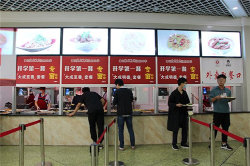 成都大学后勤处餐饮中心积极筹划、精心准备,除了常态的餐饮供应外,还为新生开设“开学第一餐”。分别有偏清淡口味的“大成至善”和香辣口味的“大成明德”两种套餐,满足来自全国各地,口味喜好不同的新生需求。报到日,新生到一食堂和六食堂的指定窗口,以低廉的价格便可享用味美的感恩父母“大成至善”、“大成至善”品牌套餐。一、六食堂还专门开辟一墙面,设立了欢迎新同学留言栏,同学们可以在上面可写下想说的话和想吃的菜。据餐饮中心的负责人讲,这是为了更好地满足新生的饮食要求,为师生提供更丰富多样的菜品的具体措施之一。