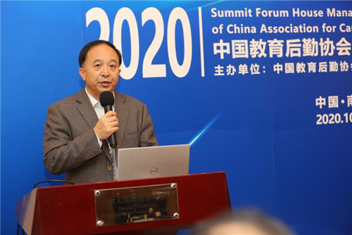 10月17日,中国教育后勤协会房产管理专业委员会2020年度高峰论坛在南京大学举行。本次高峰论坛由中国教育后勤协会房产管理专业委员会主办,南京大学承办。中国教育后勤协会常务副会长兼秘书长、房产管理专业委员会主任牛维麟,江苏省后勤协会副会长兼房产专业委员会主任、中国矿业大学副校长赵建岭,南京大学党委常委、副校长邹亚军,教育部财务司国有资产管理处副处长章亿发,江苏省教育厅、江苏省后勤协会等单位的嘉宾出席会议。会议由房产管理专业委员会副主任兼秘书长、天津大学校长助理刘宁主持。