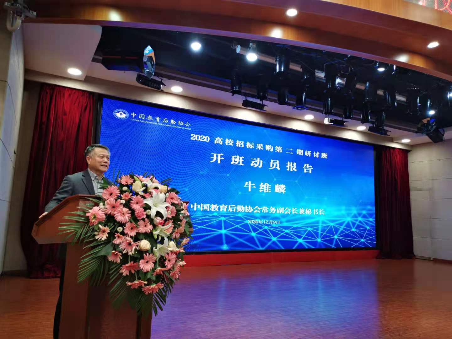 中国教育后勤协会常务副会长兼秘书长牛维麟作开班动员讲话