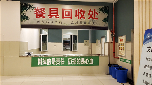 5.加强监督管理,积极倡导光盘。学校多部门协同联动,在餐厅建立“坚决制止餐饮浪费行为”学生志愿者队伍,在就餐区对就餐人员加强节约粮食、文明就餐宣传和监督;在餐具回收处,对浪费食物的行为及时提醒、劝告,切实加强节约粮食、文明用餐的引导和管理。