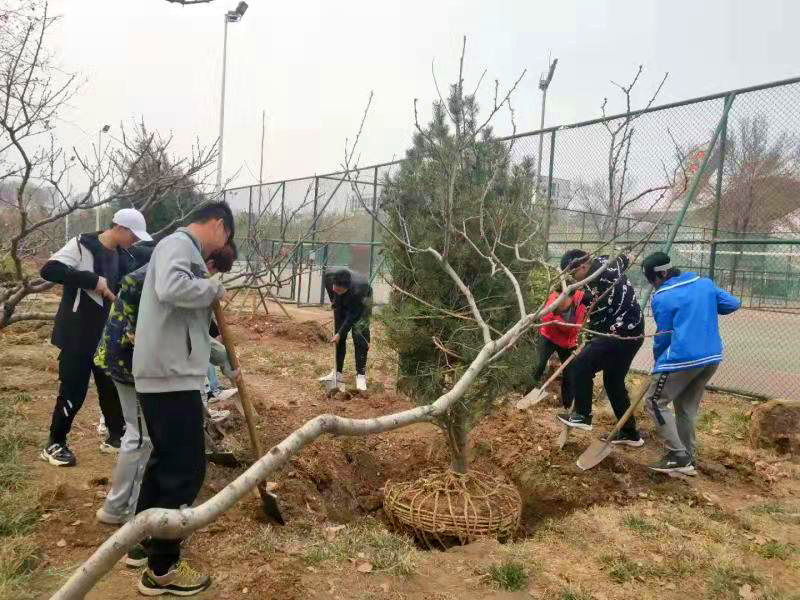 活动中,绿化工作老师向同学们详细解说了植树要领和植树步骤,同学们也开启了“十万个为什么”模式,工作老师认真地一一解答同学们的疑问。在了解了植树的有关事宜后,同学们团结协助,开始种树。有的手扛铁锹培土,有的手扶树苗栽种,有的手提水桶浇水,大家彼此配合,干的热火朝天,深深体会到亲自栽种树苗的快乐与呵护树苗的不易。
