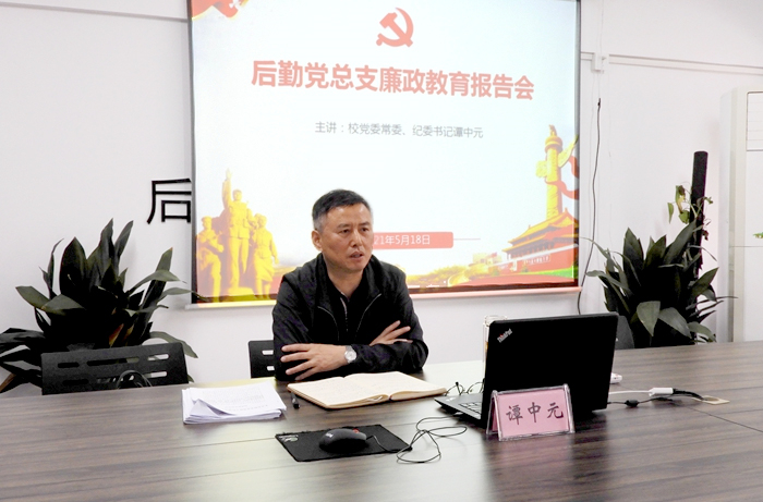 5月18日,滁州学院党委常委、纪委书记、监察专员谭中元为后勤党员作廉政教育党课报告,报告题目为《落实主体责任,加强廉政风险防控》。滁州学院后勤党总支所属后勤处、资产处、安保处3个党支部全体党员参加了会议。