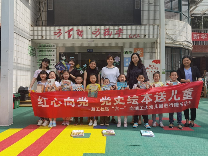 看到孩子们对党史绘本的喜爱,湖工幼儿园韩书记、蔡园长高兴向社区何副书记说到“我们幼儿园的孩子们的阅读书籍还是很多的,但是党史绘本还真的不多,社区真是想我们所想,太感谢送来的这批党史儿童绘本书籍。”