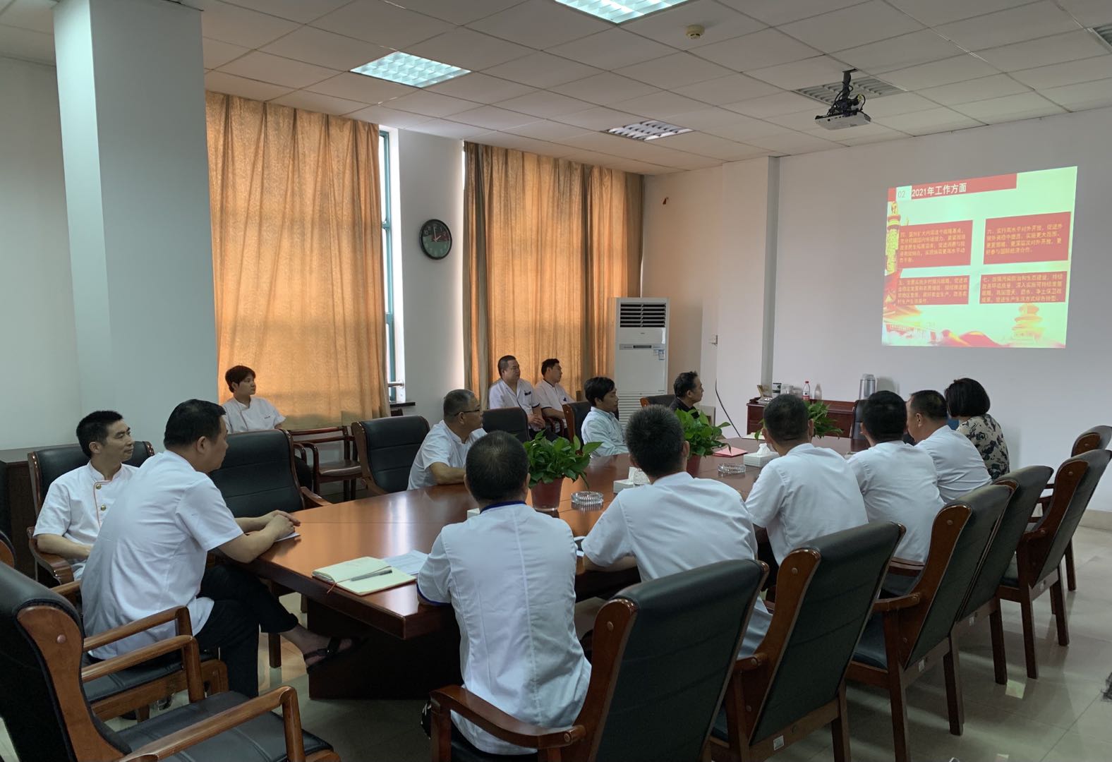会上,徐淑燕从2021年全国两会基本情况,政府工作报告解读,两会三大内容、七大看点和九个关键词等方面,与大家共同学习了2021年全国“两会”内容。会议回顾了2020年度在以习近平同志为核心的党中央坚强领导下,全国各族人民顽强拼搏、艰苦奋斗的感人事迹,在疫情防控、脱贫攻坚、全面建成小康社会等方面取得的可喜成绩。会议指出,2021年是实施“十四五”规划、开启全面建设社会主义现代化国家新征程的第一年,政府工作报告的一系列新目标、新举措,为社会经济高质量发展指明了方向。会议强调,新的起点,新的征程,全体人员要统一思想,立足学校和后勤新发展阶段,贯彻新发展理念,积极从“两会”中汲取智慧和力量,助推高校餐饮工作实现高质量发展。