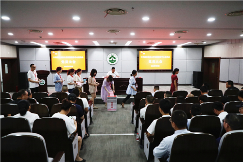 经学校党委批准,7月7日下午,中共浙江农林大学后勤服务中心委员会党员大会在东湖校区图书馆第二报告厅召开。学校纪检监察室主管于海燕出席会议并指导,后勤集团(后勤服务中心)全体正式党员及预备党员90余人参加会议。会议由后勤集团(后勤服务中心)党委书记郑本军主持。