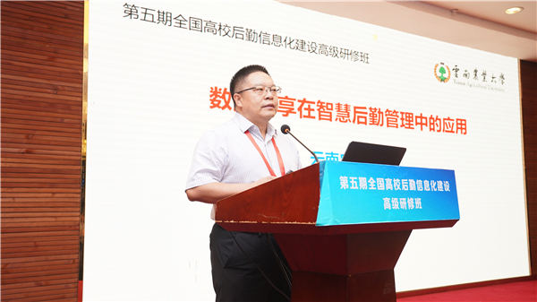 张大林代表东道主贵州大学致辞,他对大家的到来表示欢迎,简要介绍了贵州大学的基本情况,他指出,贵州大学作为贵州地区的龙头高校,在培养高素质人才、产出高质量成果、推动本地区经济发展等方面作出突出贡献。他强调,通过现代信息技术手段能有效提升后勤保障质量、提高师生满意率,后勤信息化建设是非常必要的。建议各校通过本次研修的机会,互相探讨、共同提升,结合本地区、本高校的实际情况,走适合自身发展的后勤信息化建设之路。