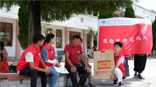图为贵州大学科技学院“三下乡”暑期社会实践团理论宣讲队正在给村民宣讲“七一讲话”精神 中国青年网通讯员刘玉萍摄