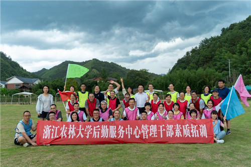素质拓展活动趣味十足,脑力与体力兼具。有一竿到底、珠行万里、击鼓颠球、一圈到底和团队节拍共5个项目。所有队员们分成四队,各自选出队长和队花,敲定队名、口号和队歌,排好队型,穿上队服,分队进行挑战项目。在规定的时间内完成挑战项目数量最多的团队即为胜利。比赛中,每支队伍都集思广益、群策群力。每位队员都勇于挑战自我,发挥不叫苦不叫累精神,积极拼搏、配合默契,不断总结失败经验,并从中寻找最快的解决方案和竞技技巧。最终,有2支队伍在限定时间内高效完成了所有项目。