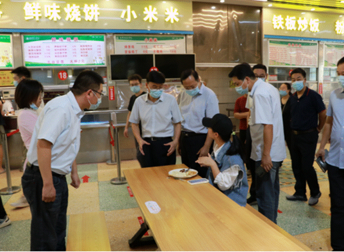 张伟副书记、张世海副校长随机对食品安全及服务质量进行调研。详细询问就餐同学饭菜分量、口味、价格、服务态度,对样品名称、分量、种类进行抽检。张世海表示食品安全重于泰山,留样是食品安全工作的有力支撑,一定要全面、细致、认真对待。