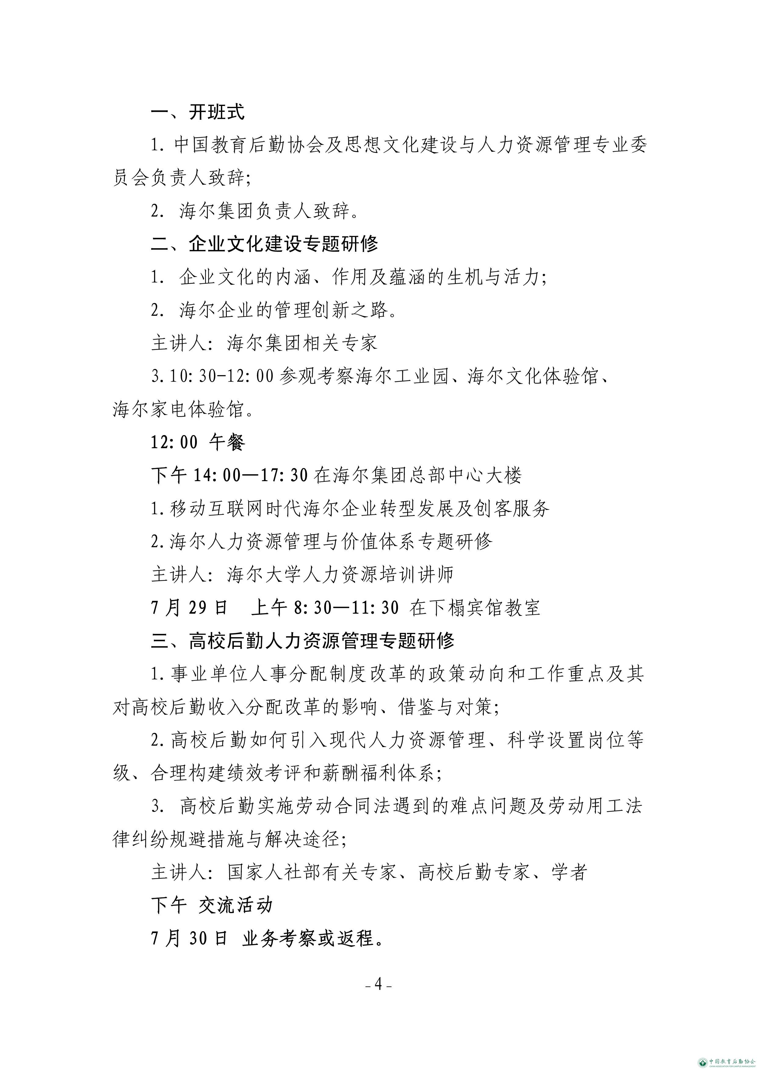 关于举办“走进海尔--第三期全国高校后勤文化建设与服务管理创新高级研修班”的通知