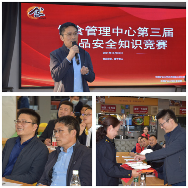 2021年10月26日下午,中国矿业大学总务部饮食管理中心第三届食品安全知识竞赛在美食广场二层拉开帷幕。为提高学校餐饮从业人员的食品安全法治意识,促进员工规范操作的能力,在全中心范围内营造人人关心、人人重视食品安全的良好氛围,精心组织了本次食品安全知识竞赛。总务部原党委书记张惠忠,党委副书记、纪委书记王伯平,党政办公室主任杨爱东,物业管理中心主任刘宏宇,饮食管理中心主任乔艳茹出席活动。