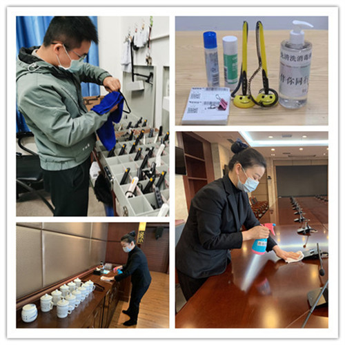 各楼宇加强疫情防控宣传工作,在出入口摆放“进入楼宇,请佩戴口罩”的温馨提示;同时积极协调,安排每日到岗人员,持续对公共区域及重点区域进行全面消杀;组织物资、材料,按规范操作模式,在约260个点位的电梯按钮旁,放置专用纸巾、张贴“温馨提示”、设置不锈钢垃圾桶,及时满足师生使用需求。教室多媒体设备管理办公室严格执行外借设备消杀程序,借出前、收回后采用消毒液擦拭;每天中午和晚上课后时间,对设备进行15-30分钟的紫外线消杀。收发室内,物业人员严格核实邮局对信件消杀情况,确保信件消杀后再入校;在公共用具区域摆放免洗消毒洗手液,供办理寄递业务的师生使用。