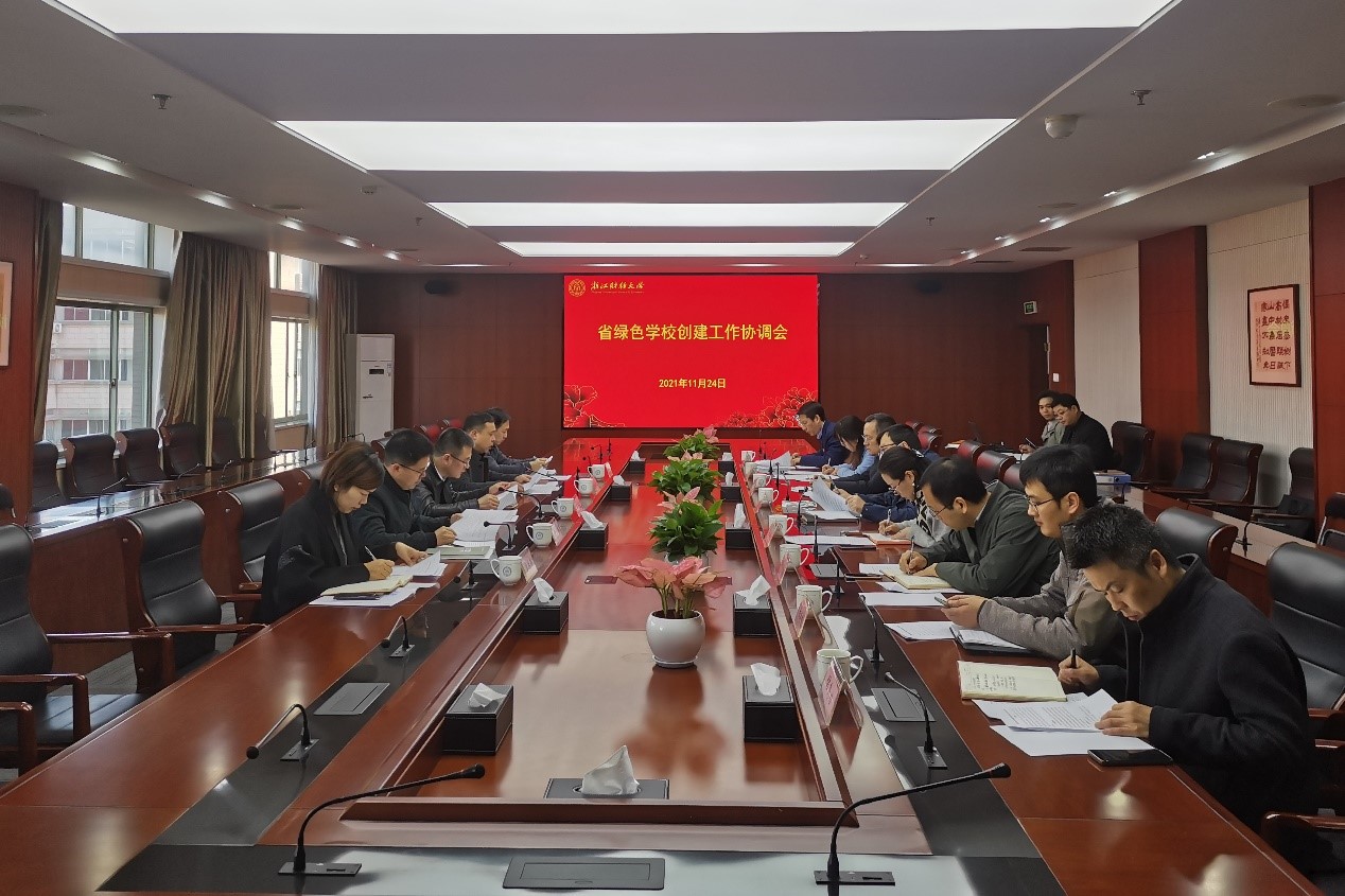 11月24日,浙江财经大学召开省绿色学校创建工作协调会。会议由副校长徐晓东主持,相关职能部门负责人参加会议。