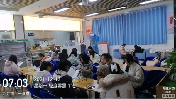 “饮服中心将倾力打造食堂服务育人的良好环境,让色香味美从食堂开始,让环境服务育人从食堂起步。”据饮食服务中心负责人介绍,除“早读会”活动外,饮食中心在期末复习阶段还会开放部分有条件的食堂供同学们复习备考。