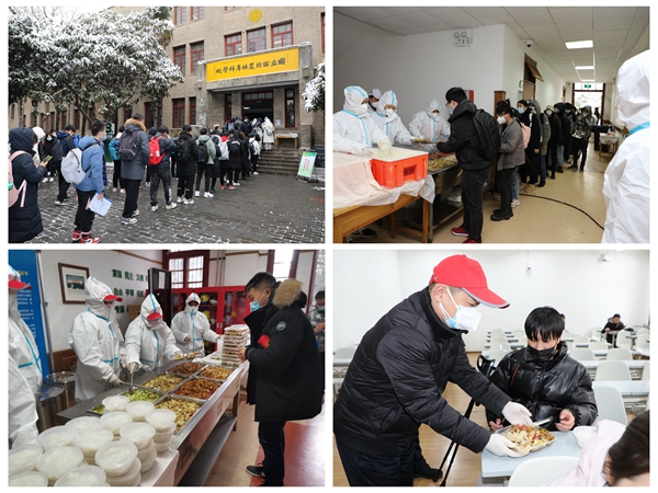 12月25日至26日,西北农林科技大学北校区三号教学楼作为校外考生中午用餐及休息地,在做好学校师生日常餐饮供应的同时,西农后勤饮食服务中心提前调配人力,全员参“战”,在北校区三号教学楼一楼设置3处校外考生临时免费供餐点,严格做好防疫举措的同时,根据考生数量和供餐需求,从人员核酸检测和任务分工、原材料供应、供餐菜单和数量定制,食堂加工、饭菜保温、车辆配送、供餐设备物料采购、现场分流、就餐指示等环节制定了详细的接待方案。同时,安排北校三食堂做好应急预案,根据实际情况随时加餐准备,临时供餐点及时为隔离教室上门配送了200余份饭餐,确保隔离考场人员按时吃到热乎的饭菜。西北农林科技大学后勤能源管理中心协同维修服务中心做好现场临时供餐点保温台等供电、设备保障,校园环境中心协同校园管理中心做好现场消毒消杀、环境卫生保洁、垃圾回收清运等工作。