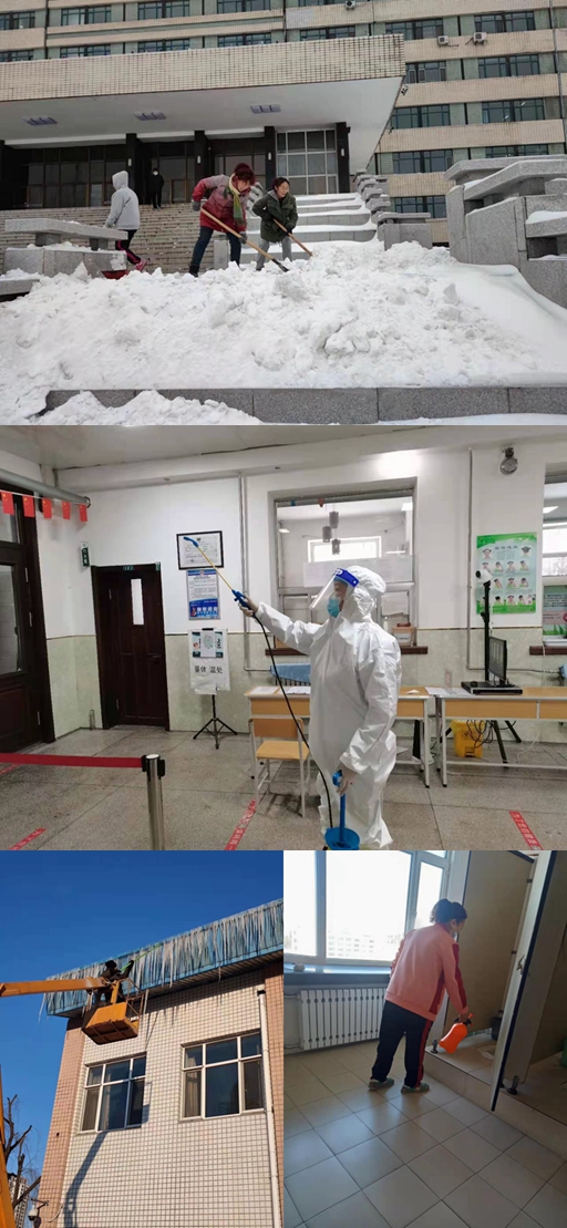 校医院加强预检分诊,严格外防输入,强化培训,全方位提高医务人员防控知识水平;绿化管理中心积极清理树木残枝,认真修剪校内树木;幼儿园继续实行“停课不停工、停课不停学”计划,构建家园线上微课程;物业管理中心组织员工及物业公司人员对校园室内外环境彻底清理,并重点对楼内大厅、楼梯、走廊等公共区域进行全面消杀;游泳馆对泳池水水质进行安全检测、管理,对水处理设备进行维修、维护,保障设备运行正常;生活服务中心对隔离房间的卫生进行彻底打扫和通风消杀;体育馆对馆内卫生进行彻底清理和通风;基建部门,全力推进新博士楼建设,利用假期,积极沟通协调2022年大修项目,确保我校基建、大修项目顺利开展;中水处理厂、锅炉房、变电所等严格履行24小时值班制度,保证设备正常运转;物资管理科对通勤车辆进行全面检测和维修保养,确保安全通勤;田园水厂提前准备1000桶桶装水和800提矿泉水。此外,后勤综合科、人力资源管理中心、财务科积极协作,对返岗员工和进校人员身体状况进行核查,保障处内各项工作有序开展。